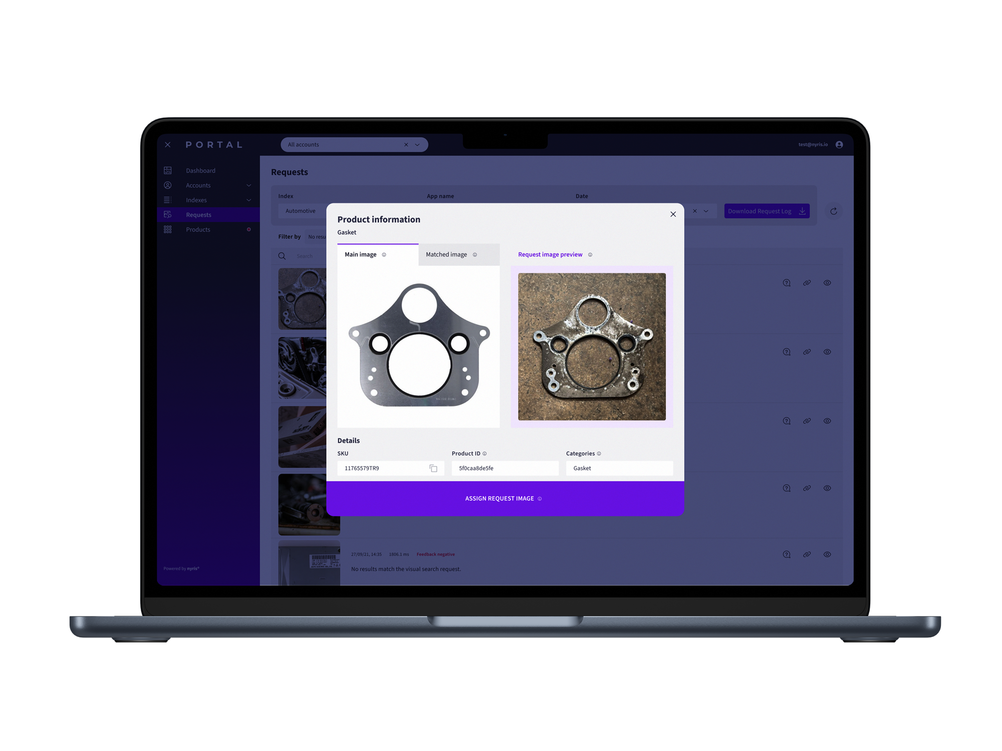 Start tagging images received through your support channels. Using the nyris visual search portal, your team can also review incoming images for visual identification, assign them to the correct product, and instantly make them searchable.